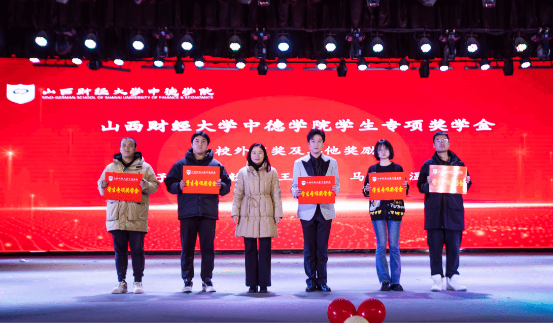 在晚會進(jìn)行過程中,校黨委常委、副校長張衛(wèi)國,中德學(xué)院黨委書記劉臣洲,中德學(xué)院院長史貞,分別為獲得專項(xiàng)獎勵受表彰的同學(xué)頒發(fā)獲獎證書。學(xué)生專項(xiàng)獎學(xué)金共分專業(yè)課成績優(yōu)秀獎、德(英)語學(xué)習(xí)優(yōu)秀獎、創(chuàng)新創(chuàng)業(yè)大賽獎三類,旨在提高學(xué)院人才培養(yǎng)質(zhì)量,提升學(xué)生綜合素質(zhì),鼓勵學(xué)生刻苦學(xué)習(xí),奮發(fā)向上,全面發(fā)展。