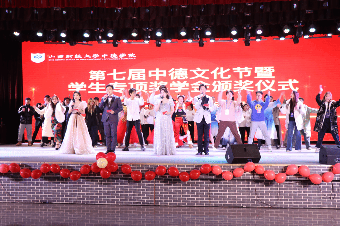 為進(jìn)一步弘揚(yáng)中華優(yōu)秀傳統(tǒng)文化,營造良好的校園文化氛圍,促進(jìn)學(xué)生多樣化發(fā)展, 12月15日晚,中德學(xué)院 “踔厲奮發(fā)新征程,同心共筑中德夢”--第七屆中德文化節(jié)暨學(xué)生專項(xiàng)獎學(xué)金頒獎儀式在塢城校區(qū)學(xué)生活動中心四層大廳隆重舉行。校黨委常委、副校長張衛(wèi)國,宣傳部、統(tǒng)戰(zhàn)部、學(xué)生工作部、保衛(wèi)部、教務(wù)部、國際合作交流部、就業(yè)創(chuàng)業(yè)中心、后勤管理部、校團(tuán)委等部門負(fù)責(zé)人和各學(xué)院黨委副書記,中德學(xué)院全體領(lǐng)導(dǎo)、德國FOM大學(xué)教授、教職工和學(xué)生共同參加本次活動。