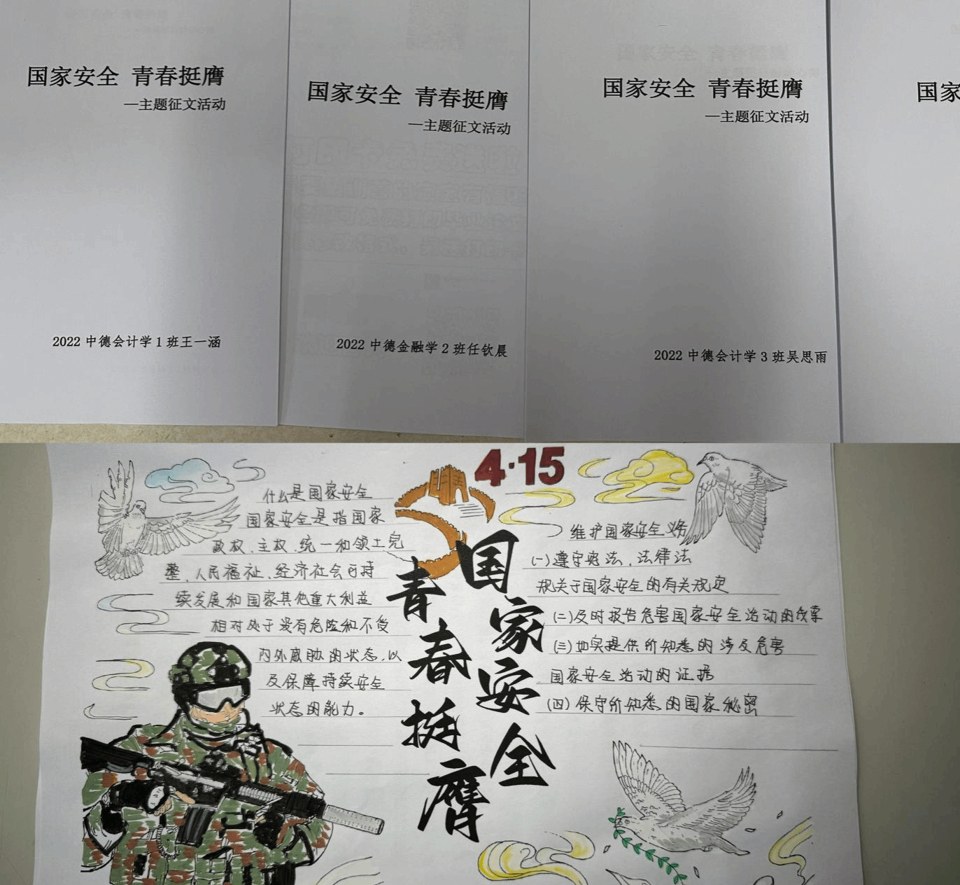 國(guó)家安全是民族復(fù)興的根基,社會(huì)穩(wěn)定是國(guó)家強(qiáng)盛的前提。時(shí)逢總體國(guó)家安全觀提出十周年之際,為深入學(xué)習(xí)貫徹總體國(guó)家安全觀,增強(qiáng)廣大同學(xué)自覺維護(hù)國(guó)家安全的意識(shí),中德學(xué)院開展了“國(guó)家安全,青春挺膺”系列主題團(tuán)日活動(dòng)。