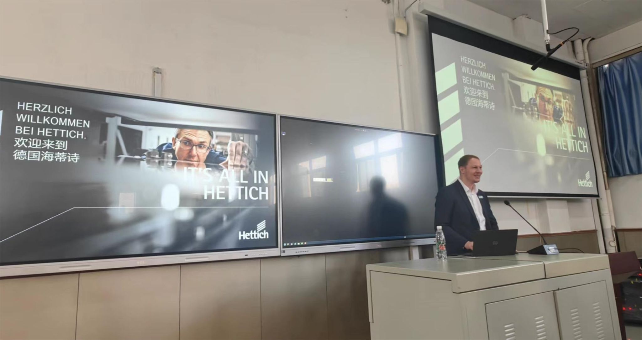 Daniel Giesselmann先生首先風(fēng)趣幽默地進行了自我介紹,通過ppt的形式向大家展示了個人簡歷以及興趣愛好。隨后,他詳細地向大家介紹了海蒂詩公司的起源發(fā)展情況,向大家介紹了近年來海蒂詩公司向全世界各地廣泛的發(fā)展。海蒂詩公司是德國家族企業(yè),歷經(jīng)四代,如今已發(fā)展成為有著135年余年歷史的國際跨國公司,是全球最大的家具配件制造商之一。隨后Daniel Giesselmann先生通過視頻的方式,向大家具體展示了海蒂詩的產(chǎn)品類型以及適用人群,贏得了大家的陣陣掌聲。最后,他向大家介紹了海蒂詩目前的盈利狀況以及投資情況,展示了海蒂詩的員工分配類型,更多來自海外的員工。