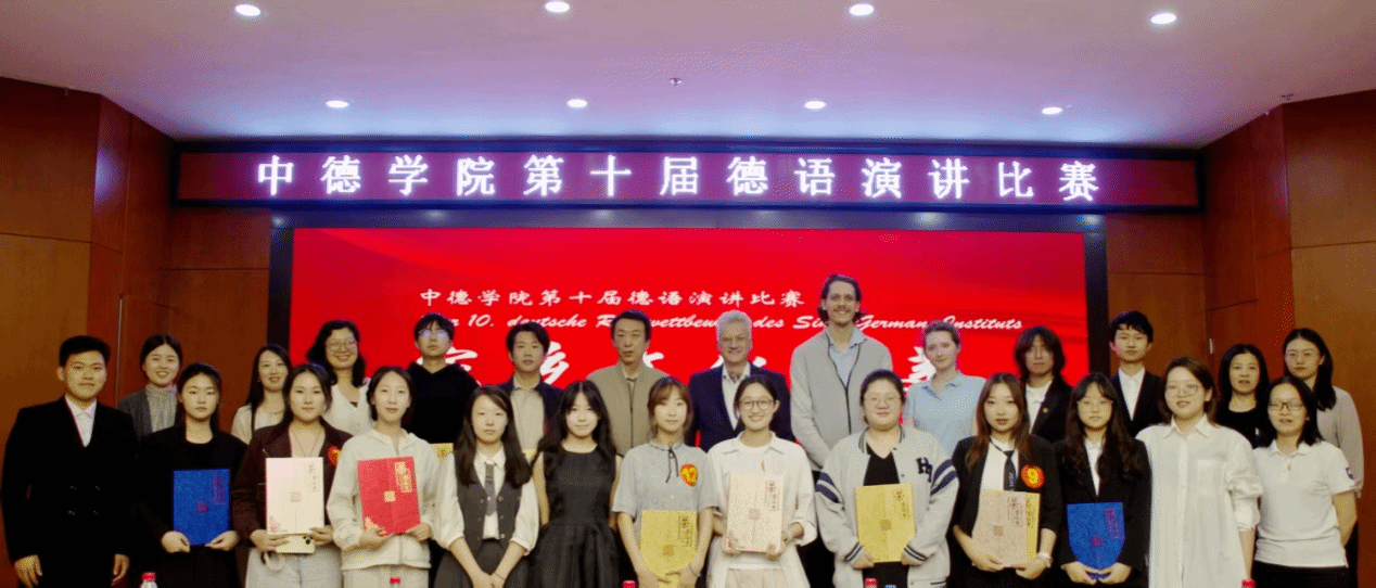 5月23日晚,博學(xué)樓二層會(huì)議室燈光璀璨,第十屆德語演講比賽決賽以“家鄉(xiāng)文化之美”為主題拉開帷幕。中德學(xué)院黨委副書記郭建軍、副院長陳嘯以及德國FOM大學(xué)德中經(jīng)濟(jì)科技學(xué)院教學(xué)院長Axel Müller教授出席,6位中德教師組成評委團(tuán),全體德語教師與大一學(xué)生全程觀摩。12位選手以流暢德語勾勒家鄉(xiāng)文化畫卷。選手們在5-8分鐘演講中,將平遙古城的磚雕、濰坊風(fēng)箏的竹骨、越劇唱腔的韻律等元素融入德語表達(dá),既展現(xiàn)了“把中國故事講給世界聽”的語言功底,更通過對家鄉(xiāng)文化的深情講述,傳遞出“文化自信源于對本土文化的認(rèn)知”的深刻內(nèi)涵。