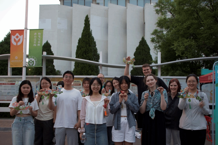 5月19日晚,在三食堂前,師生們親手制作端午節(jié)香囊與五彩繩。裝入艾草的香囊散發(fā)著傳統(tǒng)藥香,手工縫制的五彩繩串聯(lián)起民俗記憶,現(xiàn)場還同步開展紙質(zhì)龍舟制作,讓德國文化元素與端午習(xí)俗巧妙結(jié)合,不少外教也被吸引參與,體驗(yàn)中國傳統(tǒng)手工藝的魅力。