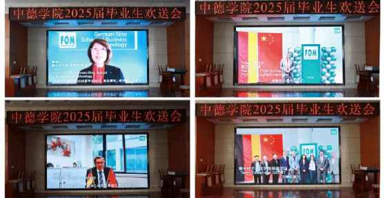 德國(guó)FOM大學(xué)德中經(jīng)濟(jì)科技學(xué)院院領(lǐng)導(dǎo)及教師向2025屆畢業(yè)生發(fā)來(lái)了祝福視頻。祝賀同學(xué)們圓滿完成四年本科課程,并強(qiáng)調(diào)中德兩國(guó)經(jīng)濟(jì)發(fā)展勢(shì)頭強(qiáng)勁、就業(yè)前景廣闊,希望大家把握機(jī)遇、精進(jìn)技能,成長(zhǎng)為優(yōu)秀的復(fù)合型人才。