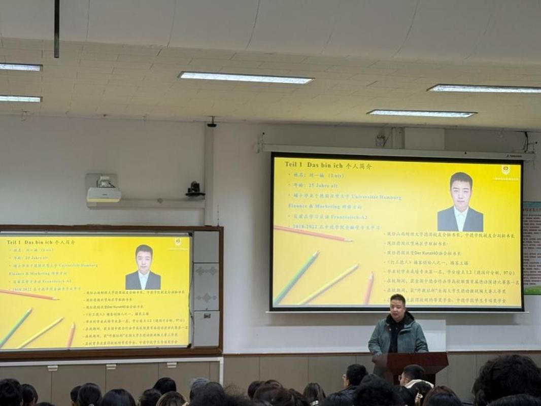 為深入貫徹立德樹人根本任務(wù),扎實(shí)推進(jìn)學(xué)風(fēng)建設(shè),賦能學(xué)生成長成才,11月13日晚上,中德學(xué)院在塢城校區(qū)慎行101舉辦了2025級學(xué)生生涯規(guī)劃沙龍(總第十三期)。本次分享會由中德學(xué)院2022屆畢業(yè)生、德國漢堡大學(xué)研究生劉一楠結(jié)合自身學(xué)習(xí)及德國留學(xué)經(jīng)歷,從課程學(xué)習(xí)、留學(xué)準(zhǔn)備、海外生活等多個維度展開,他以“從汾水河畔到萊茵之濱:我們的中德四年與德國之路”為題為在場同學(xué)提供了全面且實(shí)用的指導(dǎo)。講座現(xiàn)場座無虛席,互動氛圍熱烈濃厚,讓在場師生受益匪淺,為同學(xué)們的學(xué)業(yè)規(guī)劃與留學(xué)籌備點(diǎn)亮了前行的燈塔。