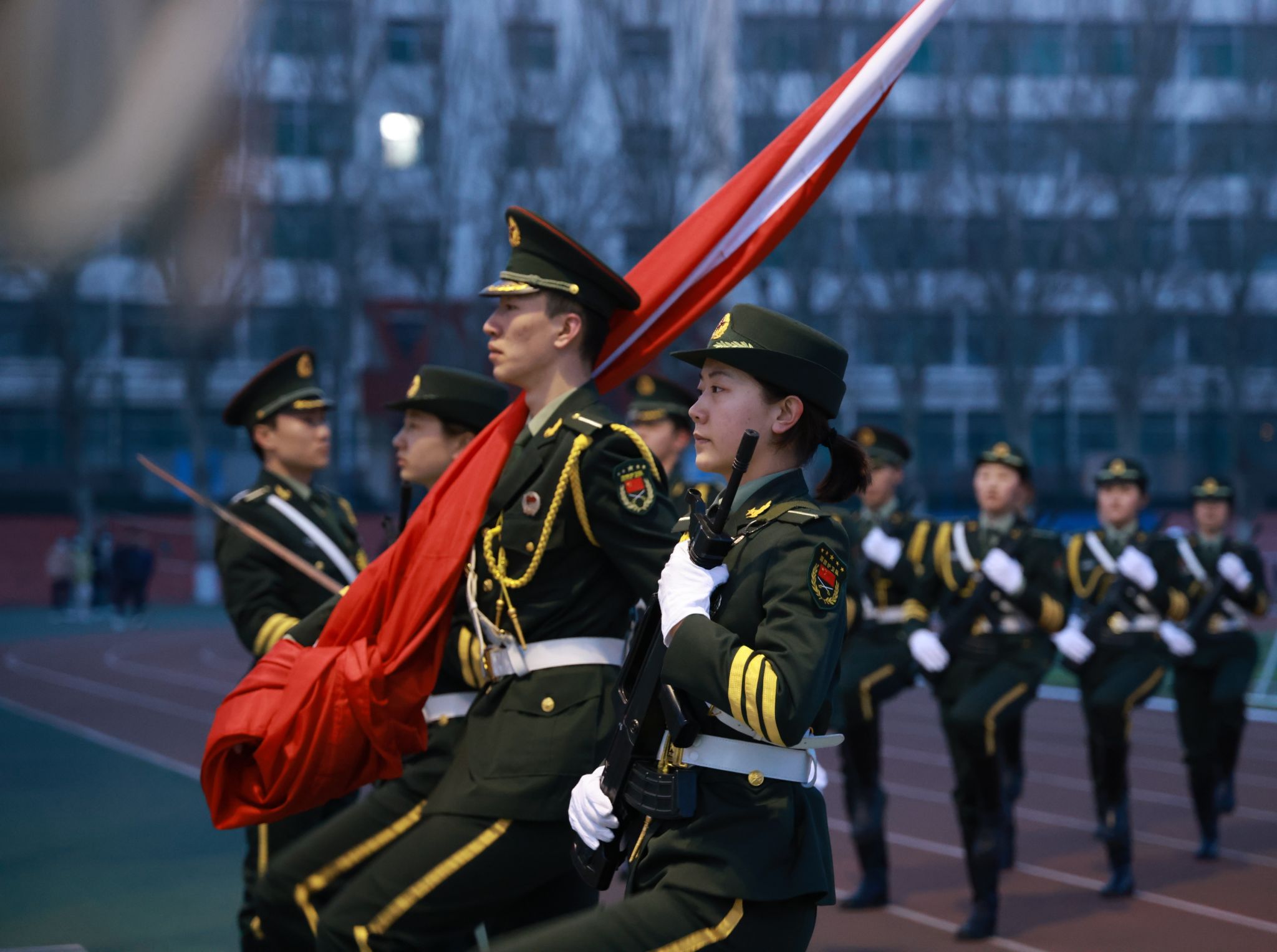 迎著春日的暖陽(yáng),感受著青春的溫度,國(guó)旗班隊(duì)員們身著統(tǒng)一服裝,邁著堅(jiān)定的步伐,以最飽滿(mǎn)的熱情、最昂揚(yáng)的氣勢(shì),守護(hù)著國(guó)旗走向國(guó)旗臺(tái)。隨著激昂嘹亮的《義勇軍進(jìn)行曲》響起,鮮艷的五星紅旗在空中展開(kāi),冉冉升起。全體師生向五星紅旗行注目禮,齊唱國(guó)歌,向祖國(guó)致以最崇高的敬意。