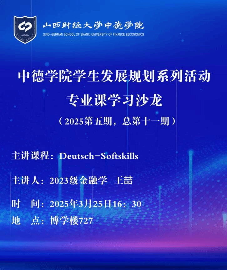 本次內(nèi)容就《Deutsch-Softskills》課程特點(diǎn)及考試難點(diǎn)進(jìn)行針對(duì)性梳理講授,并將學(xué)習(xí)方法經(jīng)驗(yàn)進(jìn)行了分享。本次專業(yè)課程學(xué)習(xí)沙龍主講人是2023級(jí)金融學(xué)王喆同學(xué)。