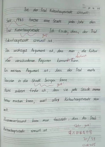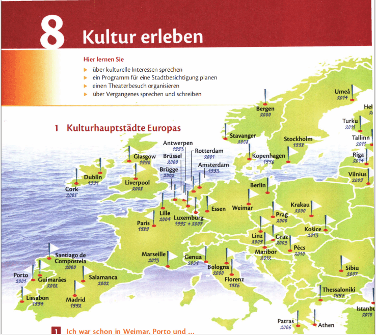 進(jìn)入第 8 教學(xué)周,德語課程也推進(jìn)到了第八單元的學(xué)習(xí)。本單元圍繞 “文化體驗(yàn)” 主題展開,通過了解 “歐洲文化之都” 的概念、研讀一位音樂家的魏瑪行記,以及學(xué)習(xí)預(yù)定演出票的對(duì)話等內(nèi)容,深入探討 “文化” 主題,學(xué)習(xí)相關(guān)表達(dá)和詞匯。