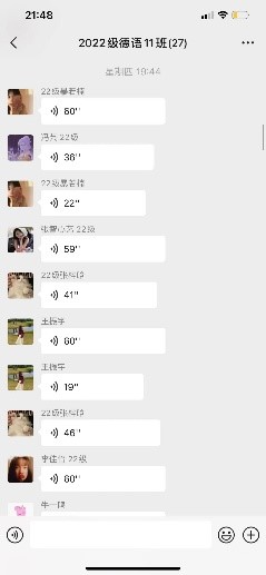 線上授課由于無法進行實時交流,對學(xué)生的口語水平影響較大。為了提高學(xué)生的口語能力,我在早自習(xí)的時候給學(xué)生放學(xué)習(xí)視頻,讓學(xué)生跟著視頻跟讀。每天晚自習(xí)都給學(xué)生留口語作業(yè),要求學(xué)生“口語打卡”,在微信群中完成口語朗讀作業(yè),并給學(xué)生糾正發(fā)音。很多學(xué)生學(xué)習(xí)興趣很高,在完全正確朗讀得到點贊之后,發(fā)朋友圈進行“炫耀”。