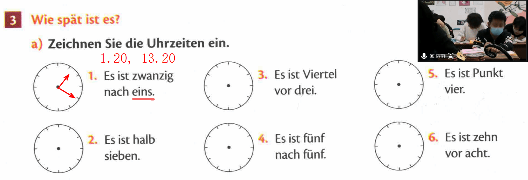 之后,秉承著“寓教于樂,學(xué)以致用”的原則,我們采取了“你畫我猜”的互動(dòng)模式,在學(xué)生當(dāng)中對(duì)于“時(shí)間”進(jìn)行一問一答,這樣既增加了課堂的娛樂性,趣味性和互動(dòng)性,避免教學(xué)過程中學(xué)生產(chǎn)生繁瑣無味感,同時(shí)又達(dá)到了鞏固教學(xué)成果的目的。