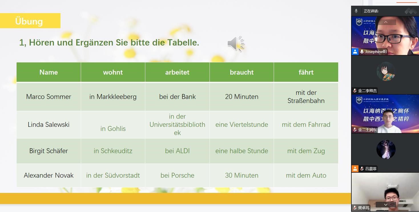 隨著多數(shù)同學的陸續(xù)返鄉(xiāng),我們的線上德語教學也面臨新的挑戰(zhàn),如何能讓同學們不因返鄉(xiāng)而落課,而且返回家之后如何針對全體同學展開德語教學,這是我們?nèi)w德語老師面臨的新的教學課題。好在疫情以來我們已經(jīng)積累了不少網(wǎng)上德語授課的經(jīng)驗,結合新的情況,我們也在不斷探索和改進新的教學方式。如何從聽,說,讀,寫,練這幾個方面著手,取得教學成果的最大化,在這方面我也有了自己的一些新的探索和體會。