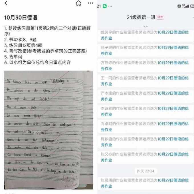 在德語(yǔ)學(xué)習(xí)的日常里,課后作業(yè)不僅是鞏固知識(shí)的橋梁,更是師生間溝通的紐帶。為了全方位、多角度地了解學(xué)生們每日的學(xué)習(xí)成效,我精心設(shè)計(jì)了包含朗讀、課本習(xí)題、練習(xí)冊(cè)挑戰(zhàn)、聽(tīng)寫改錯(cuò)以及小組總結(jié)等多個(gè)模塊的課后作業(yè)體系,旨在為每位學(xué)生打造個(gè)性化的學(xué)習(xí)路徑,確保他們?cè)诘抡Z(yǔ)的海洋中穩(wěn)步前行。