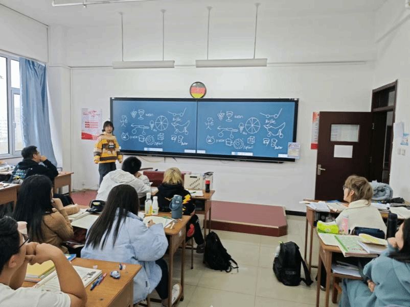在德語(yǔ)學(xué)習(xí)的征途中,我始終堅(jiān)信,樂(lè)趣是最佳的導(dǎo)師。為了點(diǎn)燃學(xué)生們對(duì)語(yǔ)言學(xué)習(xí)的熱情,讓每一堂課都充滿歡笑與驚喜,我巧妙地融入各種小游戲。“德語(yǔ)版你畫我猜”更是將創(chuàng)意與語(yǔ)言學(xué)習(xí)完美融合,學(xué)生們?cè)跉g笑與猜測(cè)中,不僅鍛煉了語(yǔ)言表達(dá)能力,更激發(fā)了無(wú)限的創(chuàng)造力與想象力。每一個(gè)簡(jiǎn)單的線條、每一抹色彩,都承載著學(xué)生們對(duì)德語(yǔ)單詞的獨(dú)特理解與詮釋,讓語(yǔ)言學(xué)習(xí)變得更加生動(dòng)有趣。