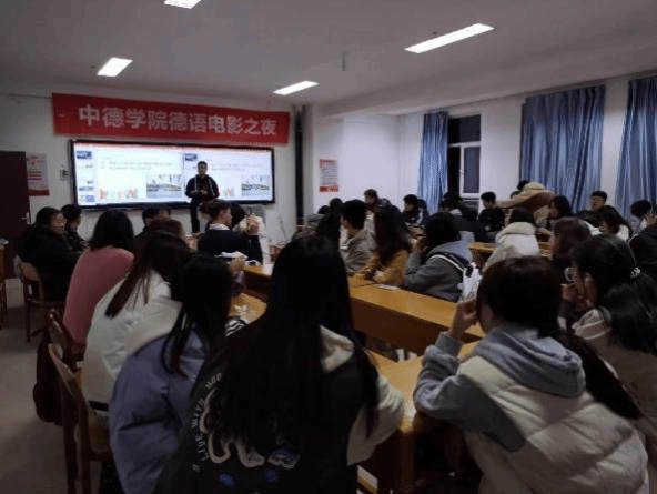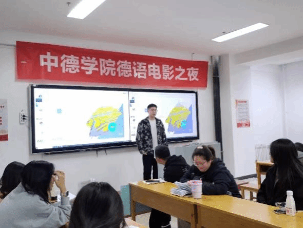 中德學(xué)院德語電影之夜系列活動(dòng)已成為學(xué)院特色教學(xué)拓展活動(dòng)的重要組成部分,旨在為學(xué)生搭建展示自我的平臺(tái),提升其德語口語表達(dá)水平,增進(jìn)學(xué)生與外教之間的交流互動(dòng),助力學(xué)生講好中國故事,傳遞中國聲音,培養(yǎng)國際視野。