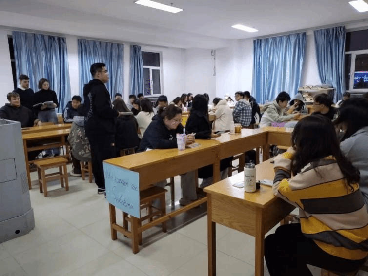 為了更加契合“家鄉(xiāng)”這一主題,前來參與活動(dòng)的同學(xué)根據(jù)來源省份分成了四組,四位外教也分別坐在四組同學(xué)中間,便于進(jìn)行交流。