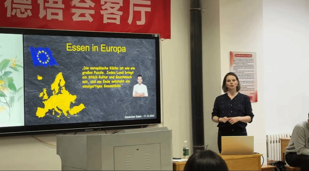 為豐富同學(xué)們的課余生活,進(jìn)一步了解德國(guó)的本土文化,12月17日19時(shí),第三期“德語(yǔ)會(huì)客廳”活動(dòng)在博學(xué)樓727教室舉行,本期主題為舌尖上的德國(guó)。德方助教Janika Steiner、Florian Hansen、Julian Leon Neuhaus,各位德語(yǔ)老師和大一年級(jí)的同學(xué)們參加本次活動(dòng)。助教Janika Steiner老師主持本次活動(dòng)。