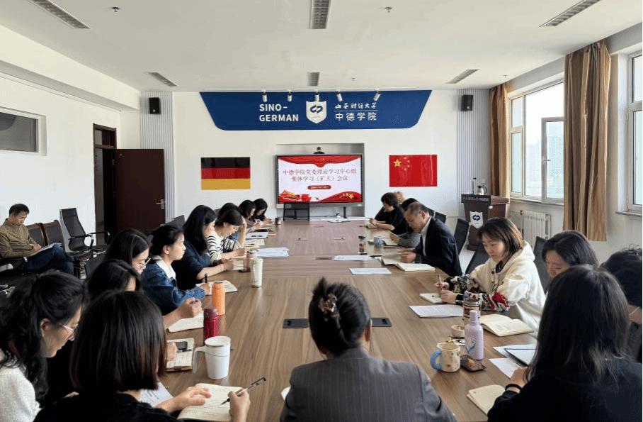10月15日下午,中德學院黨委舉行2024年理論學習中心組第八次集體學習(擴大)會議。會議由學院黨委書記劉臣洲主持,學院班子成員和全體教職工參加會議。