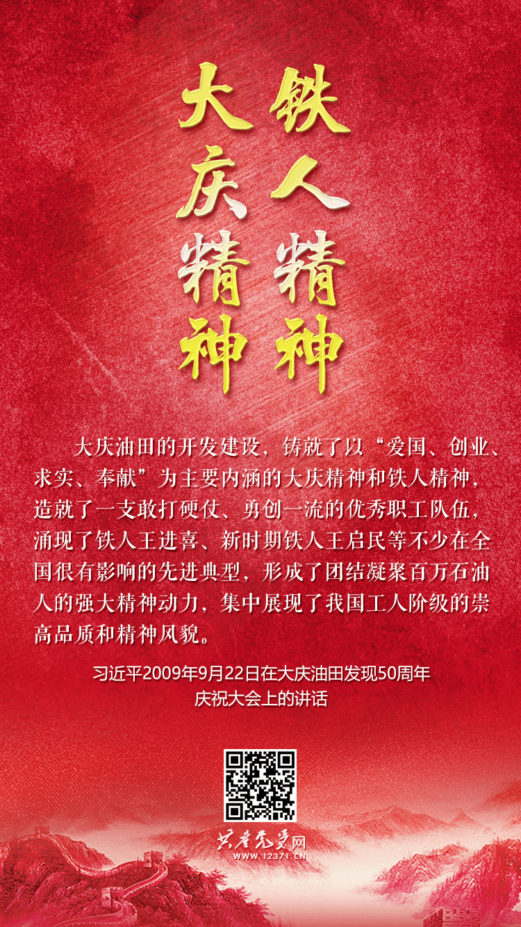 60多年來,大慶職工高唱“我為祖國獻石油”,激發(fā)為國爭光、為民族爭氣的愛國主義精神;誓言“有條件要上,沒有條件創(chuàng)造條件也要上”,砥礪獨立自主、自力更生的艱苦創(chuàng)業(yè)精神;堅持在苦干的同時注重巧干,彰顯講究科學、“三老四嚴”的求實精神;篤信“寧肯把心血熬干,也要讓油田穩(wěn)產(chǎn)再高產(chǎn)”,展現(xiàn)胸懷全局、為國分憂的奉獻精神。大慶職工以高度的主人翁責任感和歷史使命感,譜寫了建設(shè)社會主義的激越贊歌,讓大慶精神歷久彌新,成為凝聚百萬石油人的強大動力,展現(xiàn)了中國工人階級的崇高品質(zhì)。正如習近平總書記深刻指出的:“大慶油田的卓越貢獻已經(jīng)鐫刻在偉大祖國的歷史豐碑上,大慶精神、鐵人精神已經(jīng)成為中華民族偉大精神的重要組成部分。”