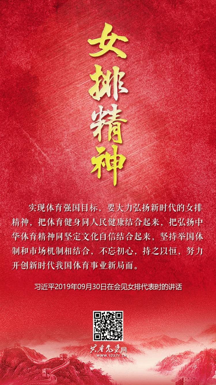 “女排精神代表著一個時代的精神,喊出了為中華崛起而拼搏的時代最強音。”40多年來,中國女排有過成功登頂?shù)妮x煌,也有過跌入低谷的挫折,但她們勝不驕、敗不餒,始終葆有那么一股不服輸?shù)钠磩拧⒋虿豢宓捻g勁,所形成的女排精神成為中華民族的寶貴精神財富,成為中國共產(chǎn)黨人精神譜系的重要組成部分,激勵和影響著一代又一代中國人投身改革開放和中國特色社會主義偉大事業(yè)。